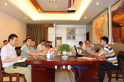 航天拓鑫公司总经理曹柏青向来访领导做专题汇报