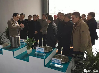 在四川航天拓鑫总经理曹柏青的陪同下,何政副市长一行参观了四川航天拓达公司管道生产线及展品陈列区。