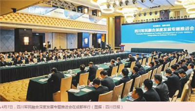 2017中外知名企业四川行的重点活动——四川军民融合深度发展专题推进会,4月7日下午在成都举行。省委书记王东明,科技部党组成员、副部长李萌,国家国防科工局党组副书记、副局长张克俭,中央军委科技委主任刘国治,出席会议并讲话。省委副书记、省长尹力主持。