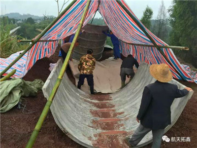 10月11日,在秋风细雨中,四川航天拓鑫玄武岩实业有限公司制造的玄武岩纤维复合水窖在渠县岩峰镇回龙村正式安装,使用后可解决回龙村两个社的村民饮水问题。