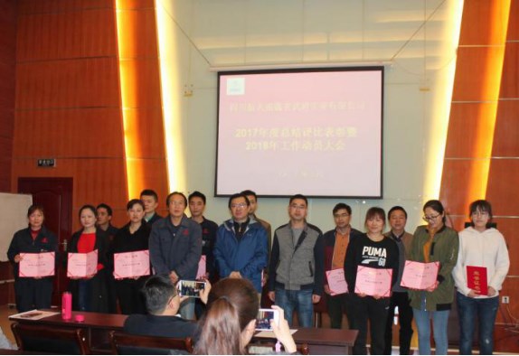 3月15日,公司召开2017年度总结评比表彰大会。各部室、中心领导、先进集体、先进个人、劳动模范、先进工作(生产)者、工会积极分子参加会议,公司总经理曹柏青、临时党委书记\副总经理鲜平、总经理助理陈中武出席会议;会议由工会主席唐太顺主持。