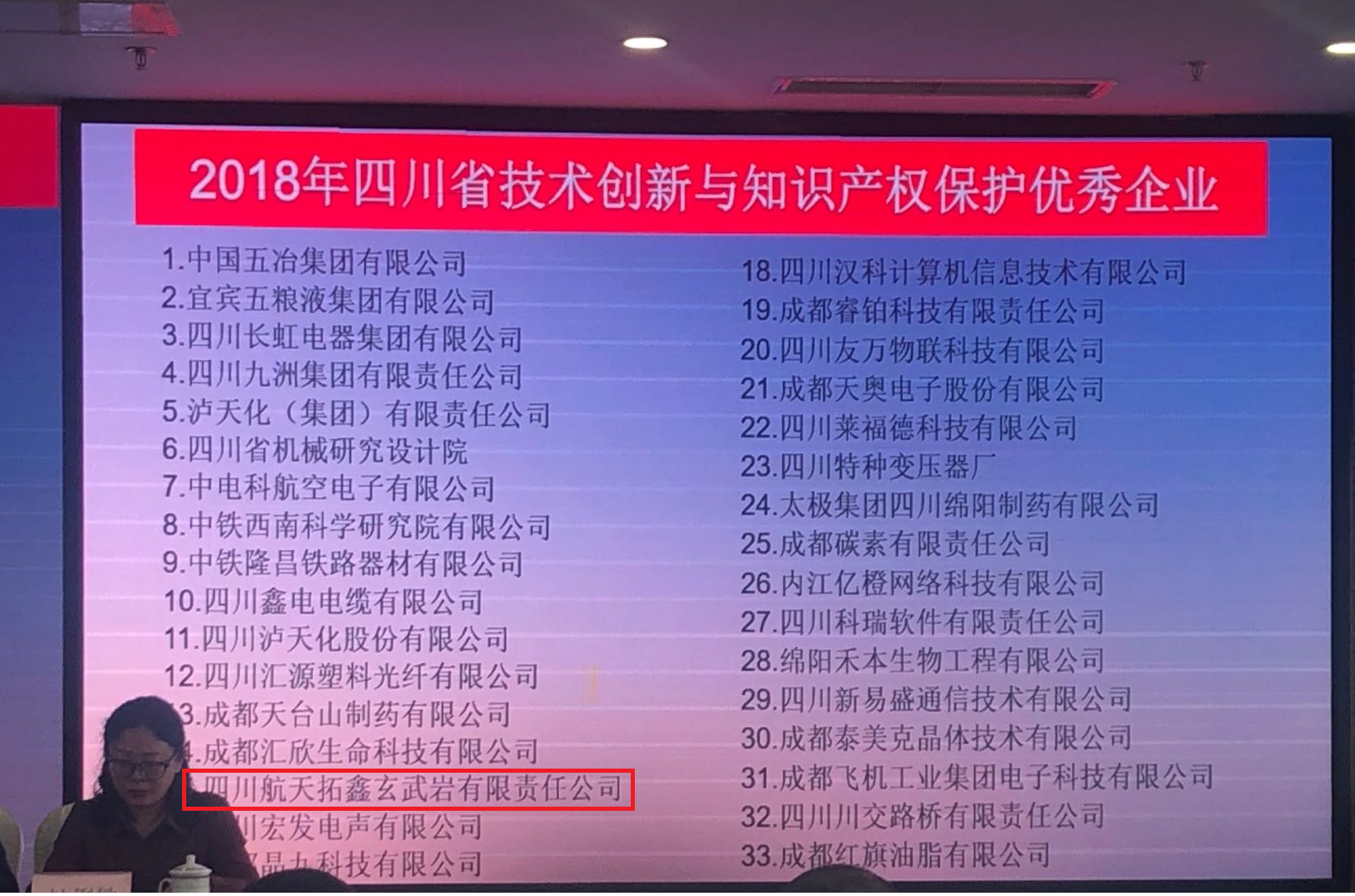 公司荣获“2018年四川省技术创新与知识产权保护优秀企业”称号