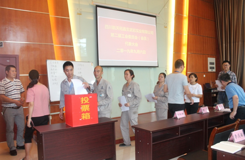 2019年9月6日上午,四川航天拓鑫玄武岩实业有限公司在二楼会议室召开第二届职工(会员)代表大会暨工会换届选举大会,公司总经理杨骥、副总经理杨彦斌等31名职工(会员)代表参加大会。