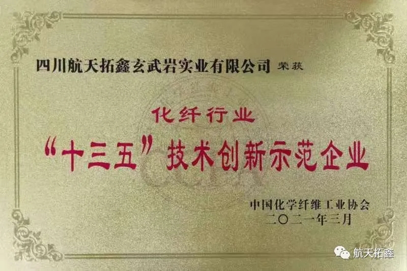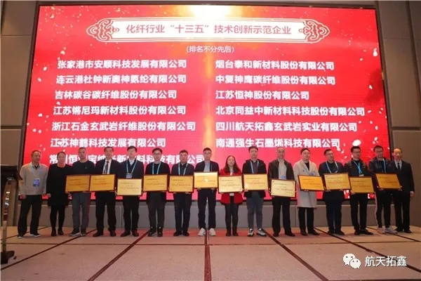 会上, 我公司荣获化纤行业“十三五”技术创新示范企业称号。