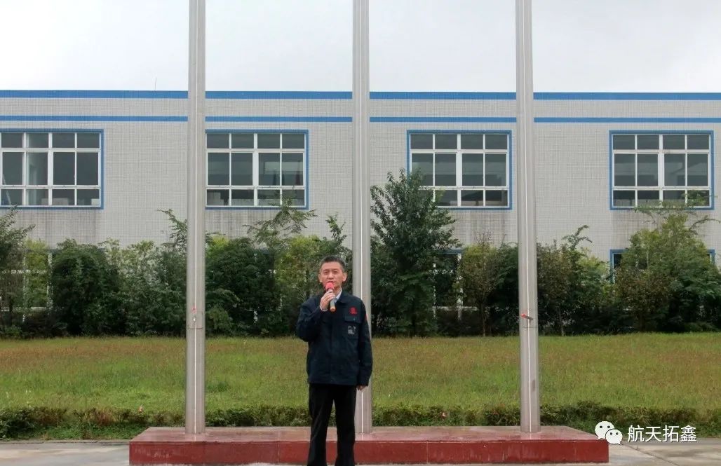 10月8日上午9点,公司升旗仪式在办公楼南门广场举行。公司总经理杨骥、党委书记鲜平、副总经理杨彦斌,全体党员、各部门负责人、班组长、员工代表共同参加此次活动。