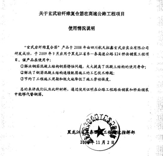 在嫩江特大桥施工中,与哈工大、省公路勘察设计院联合成立课题组,采取优化配合比,增加结构用钢筋、钢绞线和现浇段支架增设滑动装置的方式,大桥在施工期有效攻克了国内同类桥梁普遍存在的结构型裂缝和收缩裂缝的质量通病。与哈工大、省交通科研所联合成立路面课题组,通过集料级配组成而非单一依靠提高水泥剂量来保证设计强度,有效减少了半刚性基层干缩和温缩裂缝问题。借鉴美国AASHTO-2006路面设计施工指南的技术要求和国内沥青路面新理念与新技术,结合黑龙江省低温、大温差的气候特点与重载交通特征,制定了适合西部地区的沥青混凝土配合比组成设计的控制指标,有效平衡“高温车辙”和“低温开裂”的矛盾,提高路面耐久性。同时在沥青面层施工中组织施工单位自行加工机制砂以替代天然砂,提高路面工程质量。采用复合矿粉替代普通矿粉,加强石料与沥青黏附性。在分离桥桥面系施工中配合厅总工办采用玄武岩纤维复合型材料替代钢筋,经检测,可达到设计要求,而且节能、环保,大幅降低工程造价。新技术、新材料的应用保证了特大桥施工的高效进展