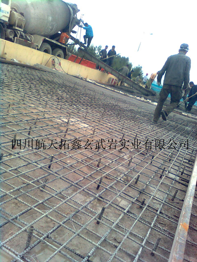 玄武岩复合筋铺装前准备、固定、捆绑、浇注图片