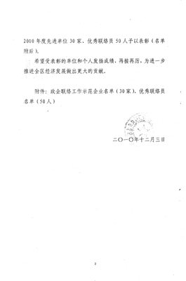 我公司荣获2010年度“政企联络工作示范企业”证书