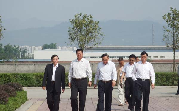 公司董事长张华(左二)、总经理曹柏青(左一)陪同杜院士(左三)参观公司办公大楼及厂房院区