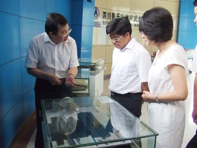 姜四清副司长(副市长)、席文副主任在听取汇报后对玄武岩纤维制品表现出浓厚的兴趣。