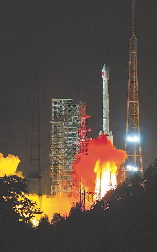 “长三乙”发射中星2A卫星的场景(崔建平/摄)