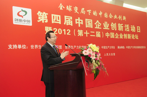 为了贯彻落实中央提出的关于“提高自主创新能力、建设创新型国家”的要求和关于加快经济发展方式转变的重大决策部署,在世界生产力科学联盟、世界生产力科学院指导与支持下,由中国生产力学会主办,中国生产力学会创新推进委员会承办的“第四届中国企业创新活动日暨2012(第十二届)中国企业创新论坛”于2012年6月9日在北京人民大会堂隆重举行。