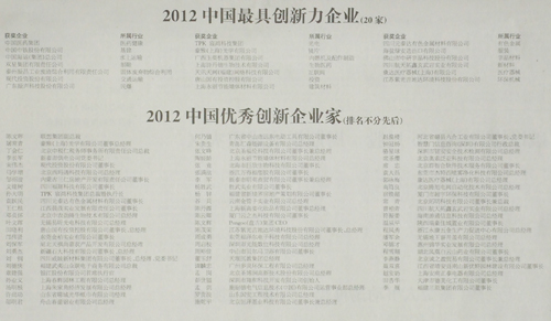 2012中国最具创新力企业合影[我公司曹柏青总经理(左二)]