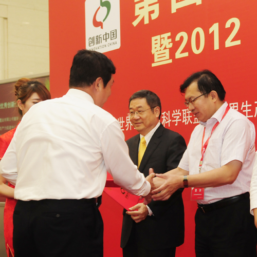 十届全国人大常委会副委员长、中国生产力学会名誉会长蒋正华先生为荣获“2012中国最具创新力企业”颁奖