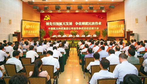 7月1日是中国共产党91华诞,恰逢神舟九号与天宫一号载人交会对接任务圆满完成之际,中国航天科技集团公司隆重召开创先争优活动总结大会,认真传达了全国创先争优表彰大会精神,全面回顾和总结了集团公司创先争优活动开展两年来的实践经验,表彰在创先争优活动中涌现出来的先进基层党组织、优秀共产党员和优秀党务工作者,并对集团公司建立健全创先争优长效机制工作进行了全面部署。