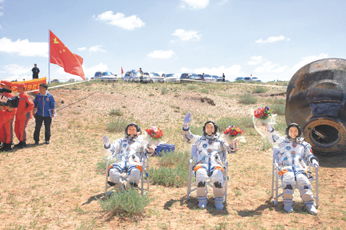 神舟九号顺利返回 航天员景海鹏、刘旺、刘洋健康出舱