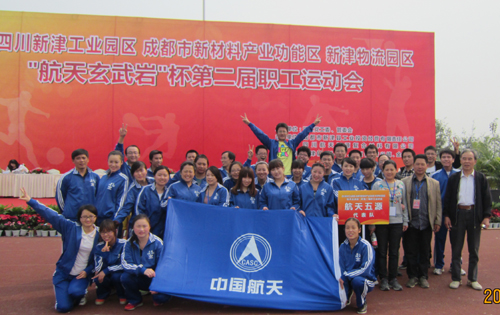 2012年10月27日上午9:00,由四川航天拓鑫玄武岩实业有限公司员工组成的“航天五源”运动方队参加(新材料产业功能区)第二届“航天玄武岩”杯职工运动会。