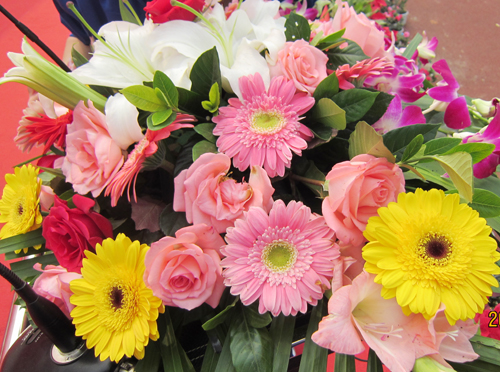 比赛运动员与工会主席、啦啦队员们合影照片