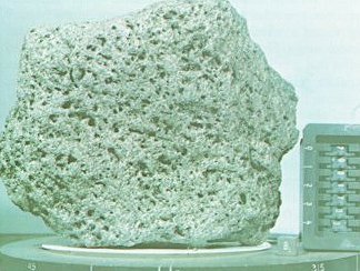月球玄武岩是构成月球的主要岩石之一,由月球外层约200公里深处形成的岩泉,经多次喷发(至少5次)在月表结晶(约1050℃)而成。是月球上最年轻的岩石,形成于距今33~37亿年间,几乎相当于已知的地球最古老岩石。月球玄武岩细粒、多孔,主要由辉石、斜长石和钛铁矿组成。其中辉石含量约50~59%,普通辉石多于易变辉石;斜长石约20~29%,为培长石或钙长石;钛铁矿含量约10~18%。次要矿物有橄榄石、铬铁矿-钛尖晶石、陨硫铁、铁、方英石、金红石、磷灰石、白磷钙矿、铜、云母、镍黄铁矿及若干尚未鉴定出的矿物。月球玄武岩的化学成分变化较大,特别是Al2O3和FeO,分别变化于7~25%和5~25%之间,一般以贫硅,富钛、铁为特点。