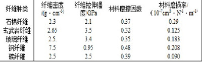 纤维种类 纤维密度/(g•cm-3) 纤维拉伸强度/GPa 材料摩擦因数 材料磨损率/(10-7cm3•N-1•m-1)