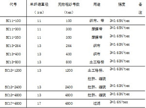 玄武岩纤维无捻粗纱,是用多股平行原丝或单股平行原丝在不加捻的状态下合并而成的集束体。7-13μm无捻粗纱的拉伸强度≥0.65N/tex、弹性模量≥95GPa、断裂延伸率≥2.6%。玄武岩纤维不仅具有与PPTA(聚对苯二甲酰对苯胺)和UHMWPE(超高分子量聚乙烯)等高技术纤维相媲美的高强度、高模量和抗冲击性能,而且耐高温、耐光性极佳,尤其是与树脂结合的界面粘接强度很高,因此各种规格的玄武岩无捻粗纱可用于织造、缠绕、编织各种复合材料预制件。
